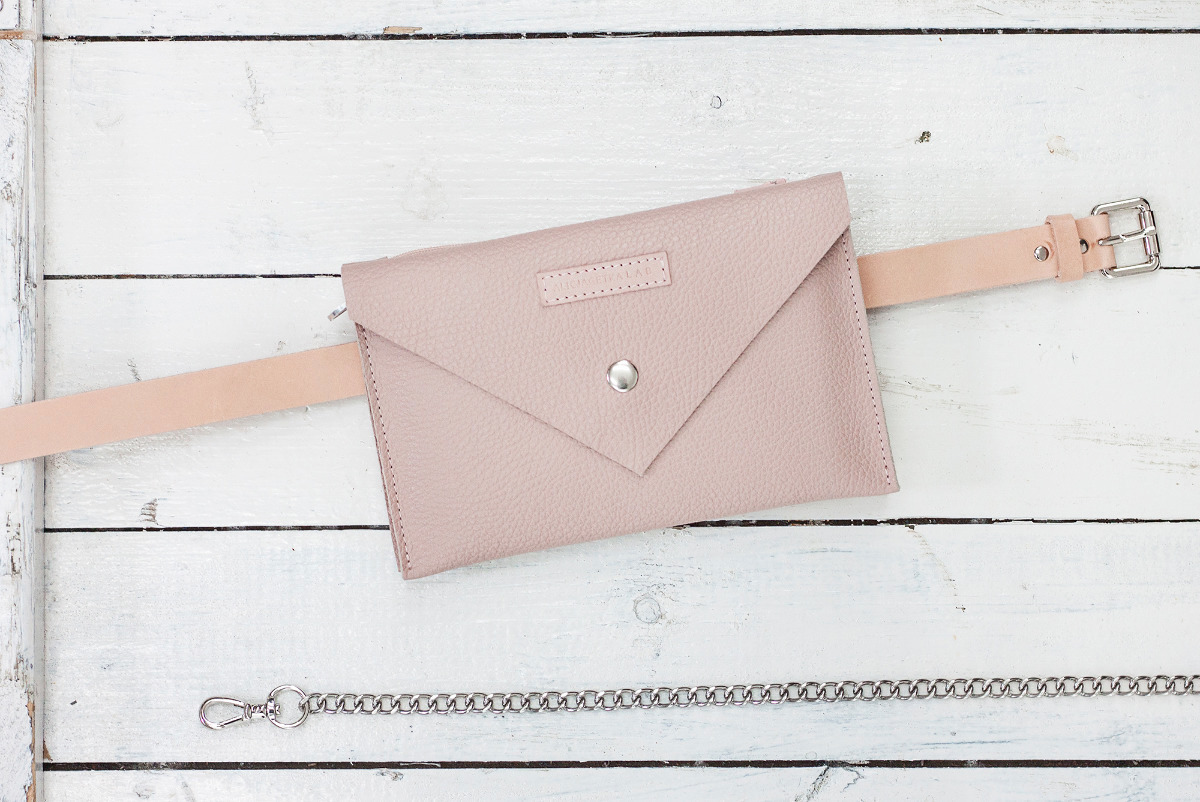 - Zewnętrzna saszetka zapinana na suwak, którą można przypiąć z przodu lub z tylu torebki, albo całkowicie odpiąć i używać niezależnie. Saszetka ma dwa fronty - skórzany oraz transparentny wykonany z folii, która umożliwia użytkowanie telefonu bez wyciągania go z saszetki. W środku saszetka ma dwie przegródki.