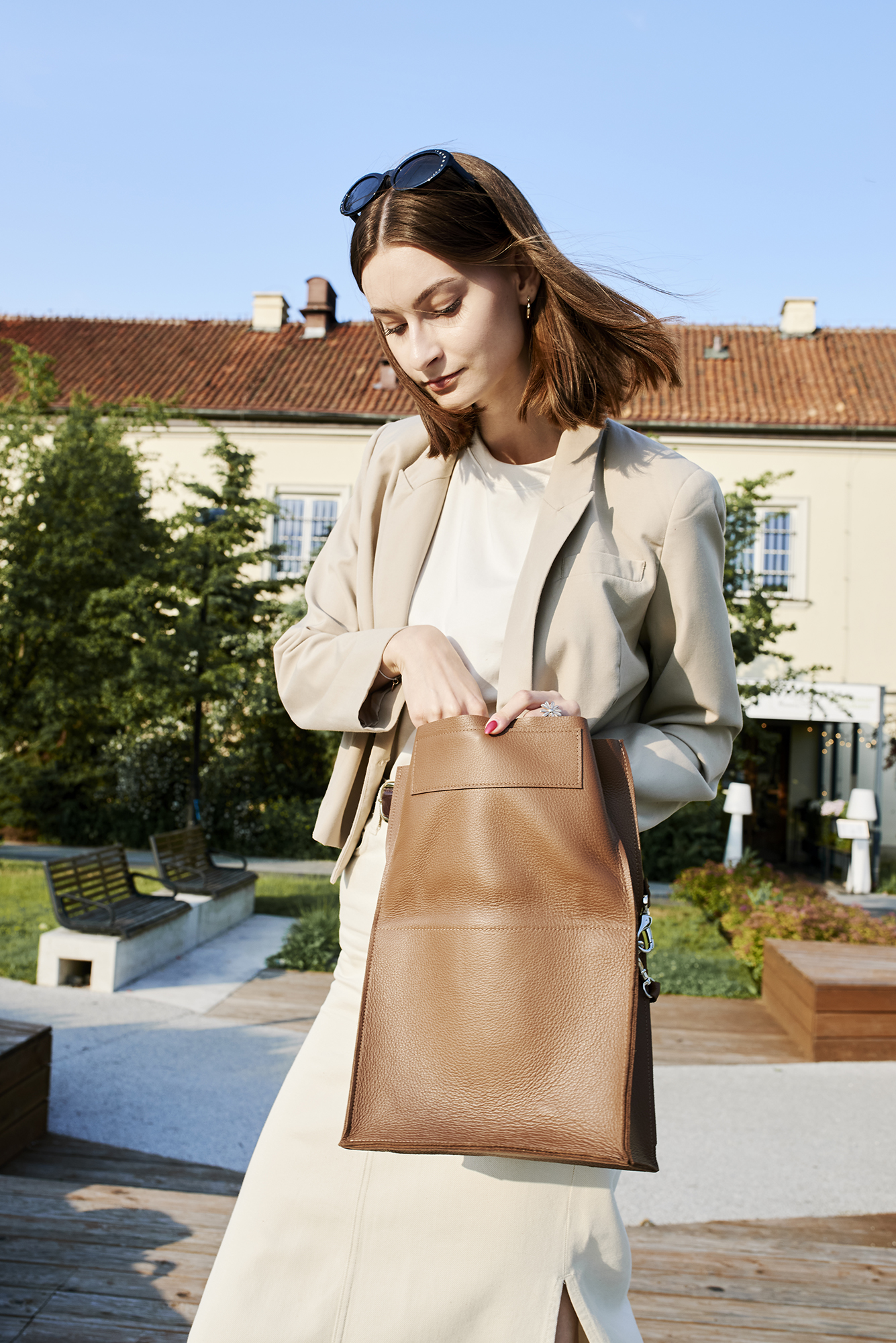 Boxy Bag L Cinnamon - a two-piece enlarged version of our capacious Boxy Bag - "boxes", the shape and size of which depends on the contents worn inside.