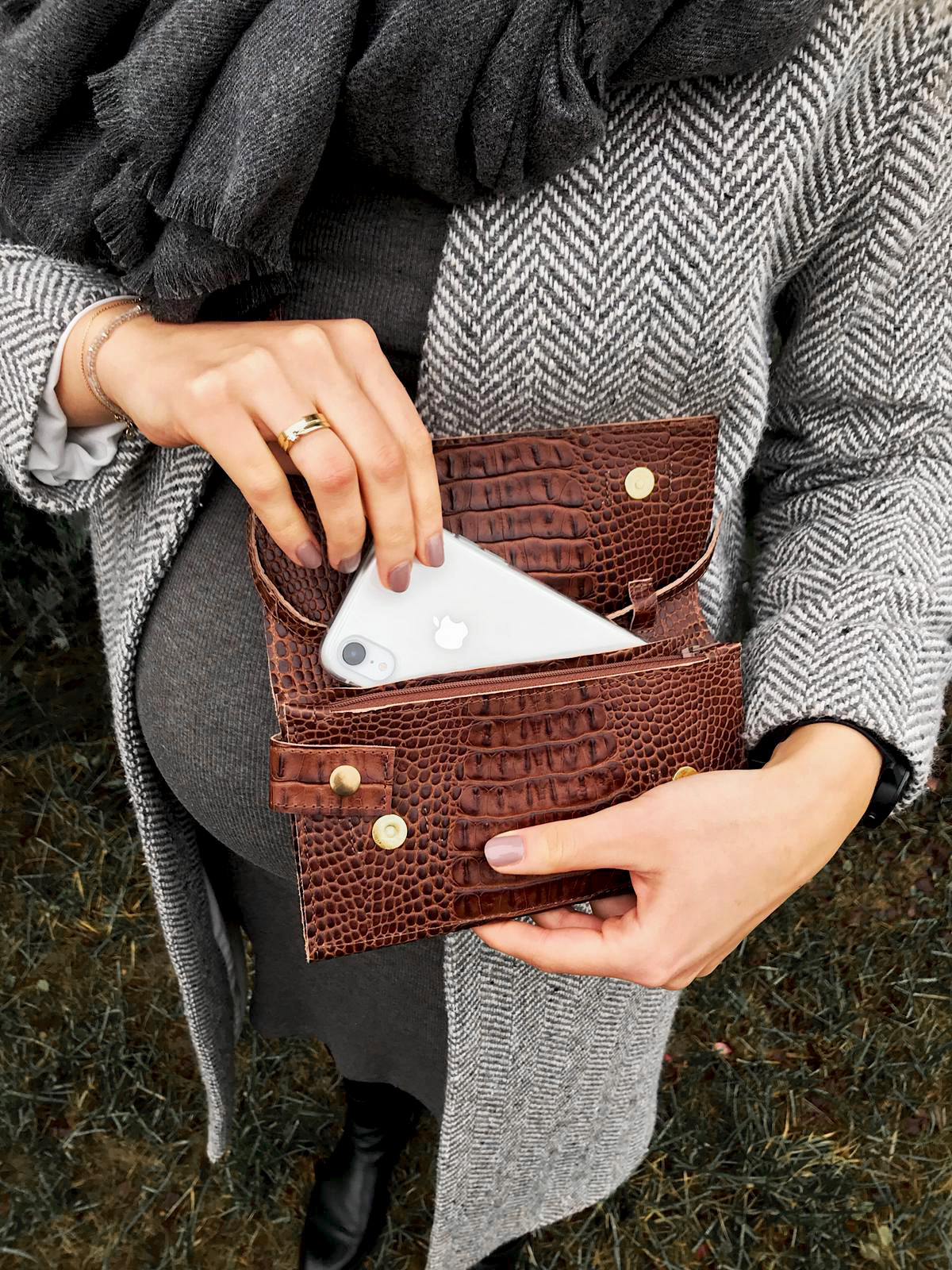 - detachable subtle strap with adjustable length and belt loops. The location of the belt attachment to the Wallet is invisible when carrying the Wallet as a clutch.