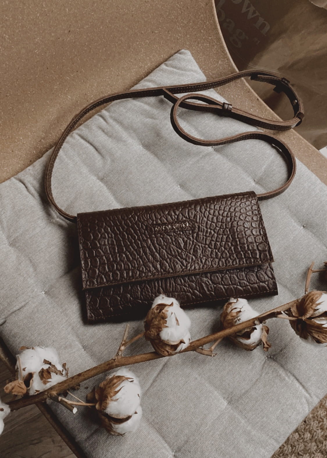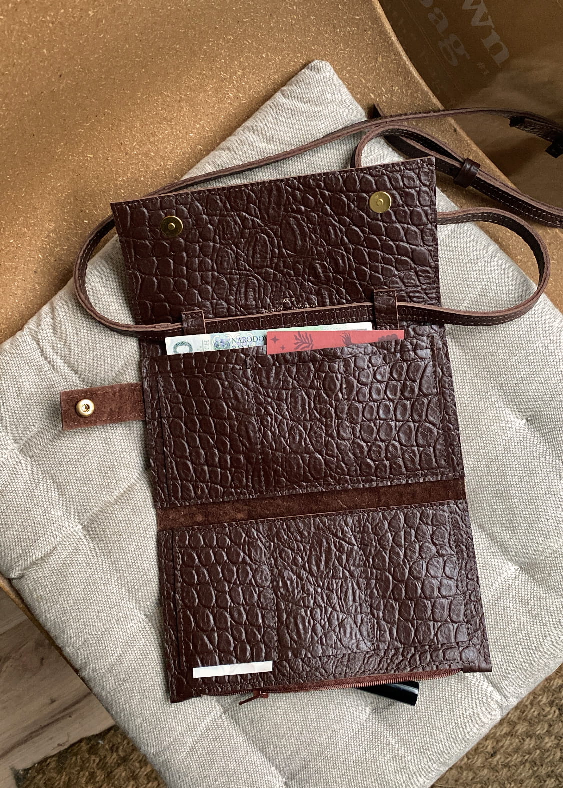 Strap Wallet Dark Brown is a stylish Wallet with a detachable strap, thanks to which it can be used without a strap, but after attaching it Wallet becomes a practical clutch. Ideal as a travel companion or evening out.