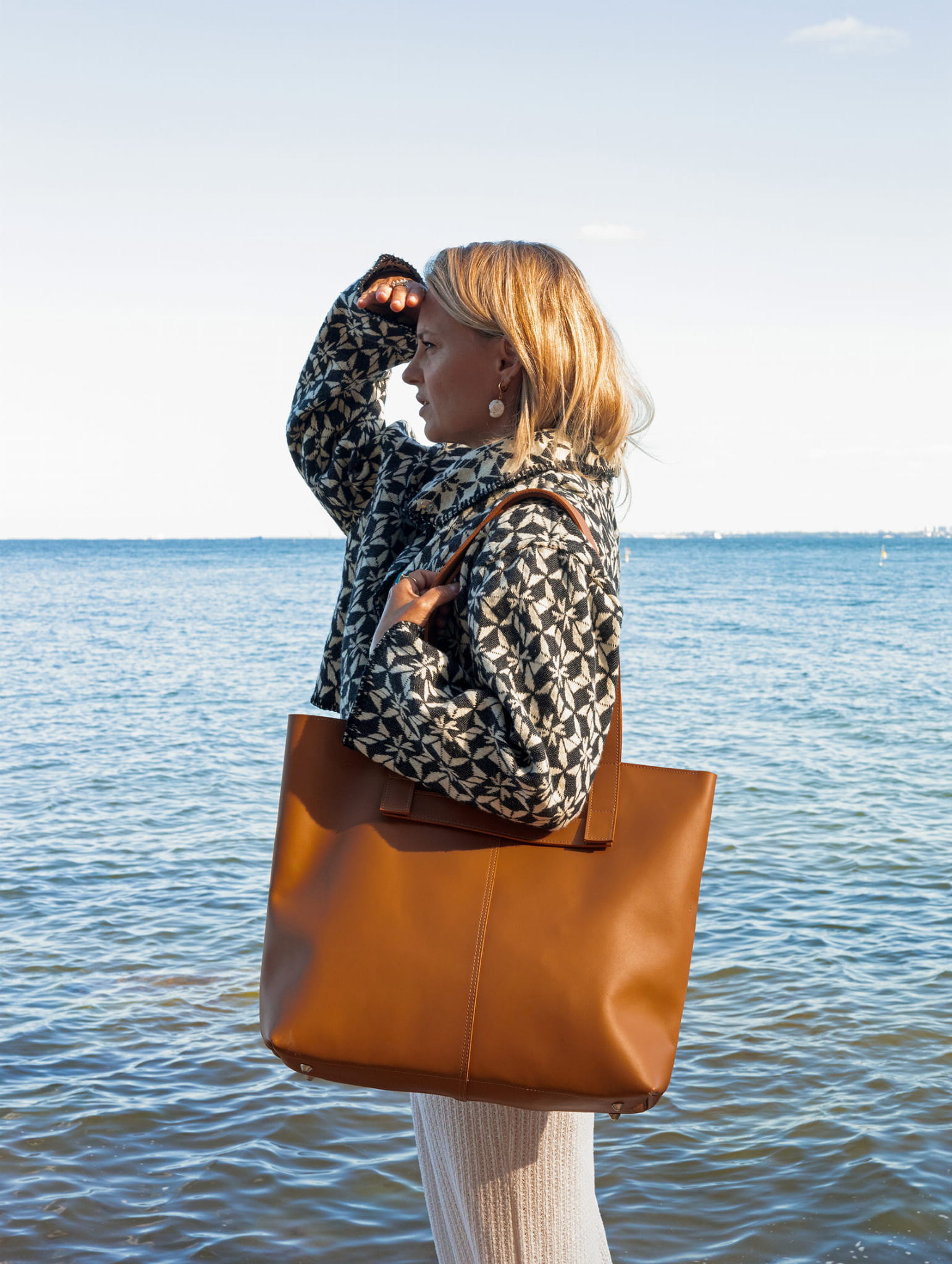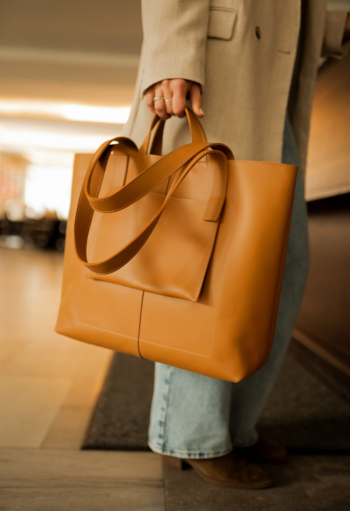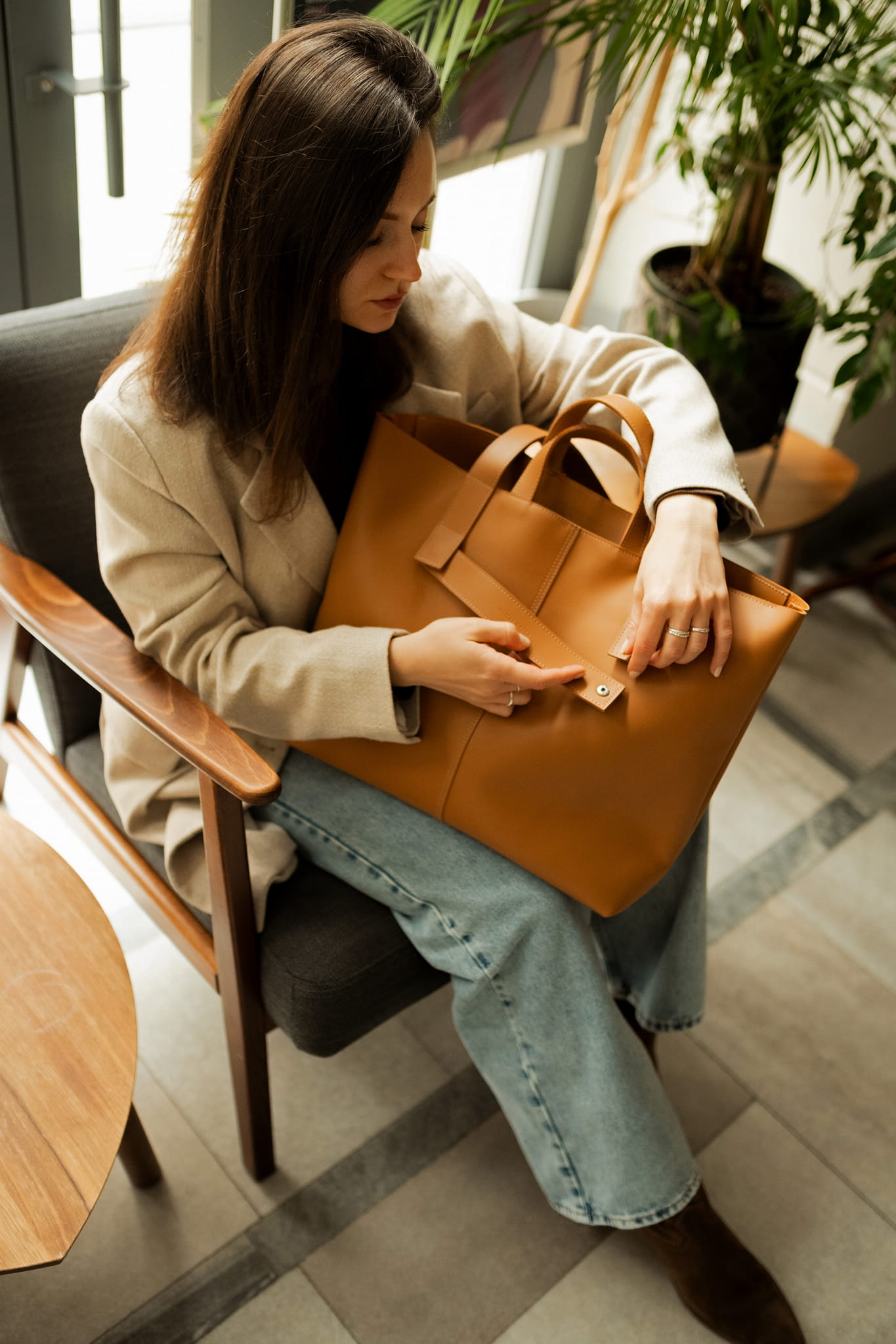 The Tote Bag in size L is our latest addition to the shopper category, combining luxury, functionality, and a universal design. Handmade from the highest quality Italian full-grain natural leather, this bag impresses with its attention to detail and elegant finish. Thanks to its detachable modular elements, you can customize it to suit your needs. Perfect for everyday use and special occasions – the Tote Bag L is a must-have in your collection!