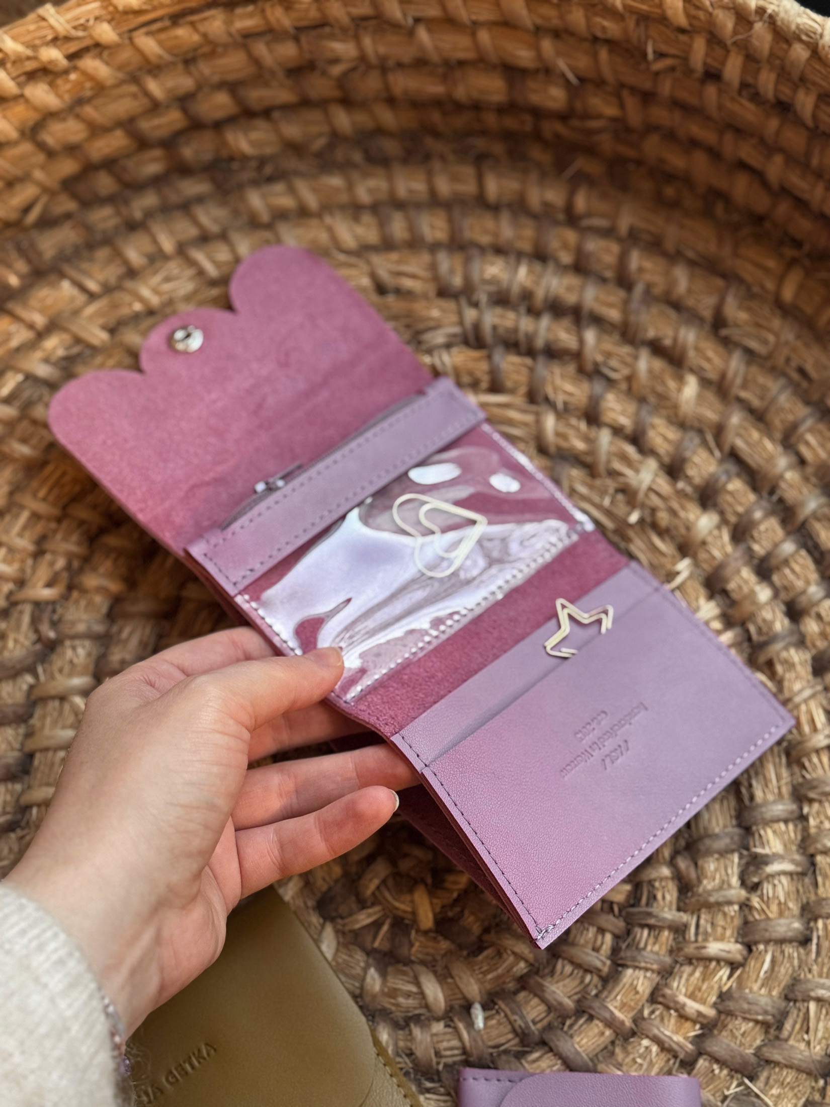 - transparent zipper pocket: for coins, keys, photos, jewelry, etc.