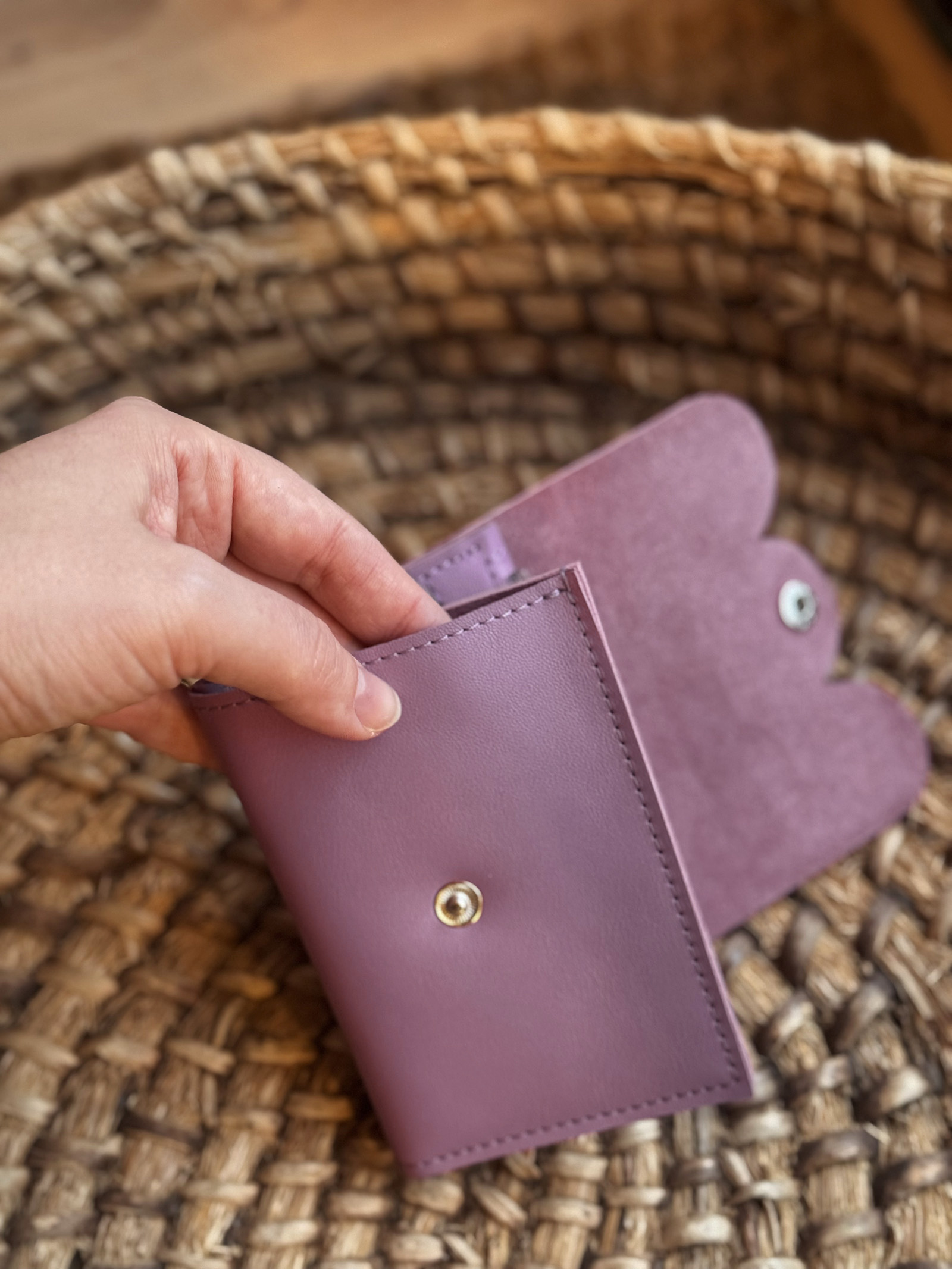 Cloud MINI is a slightly larger representative of the cloud family than MICRO. The form and center of the wallet is our best-selling MINI+ model, the novelty is a hand-cut flap and a snap closure instead of an elastic band.