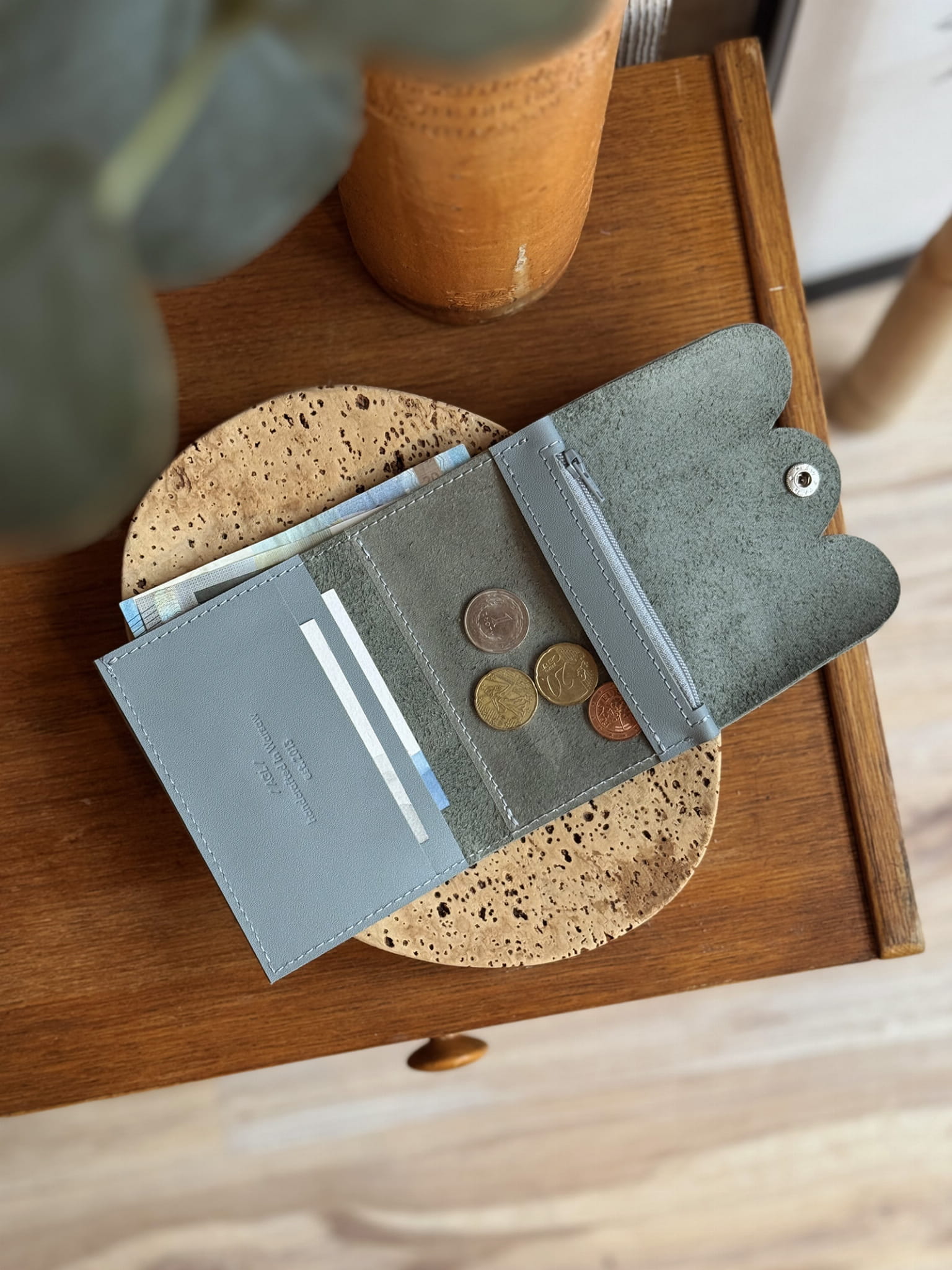Cloud MINI is a slightly larger representative of the cloud family than MICRO. The form and center of the wallet is our best-selling MINI+ model, the novelty is a hand-cut flap and a snap closure instead of an elastic band.