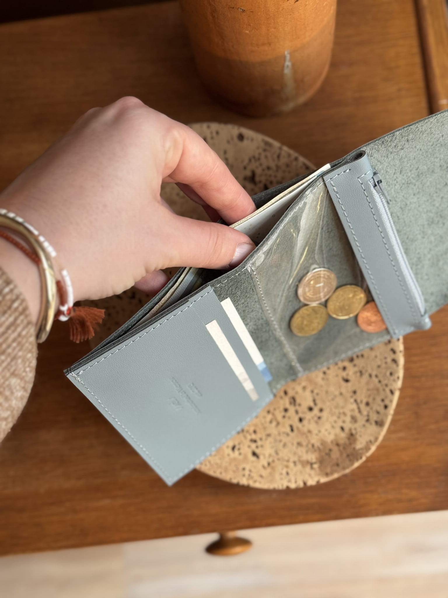 - a very handy format, a full-size wallet in terms of capacity, and on the other hand still small in size, allowing you to hide it in a tiny purse or pocket.
