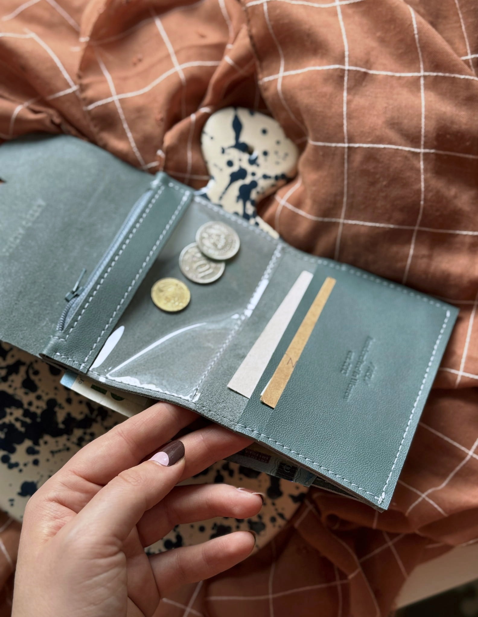 - a very handy format, a full-size wallet in terms of capacity, and on the other hand still small in size, allowing you to hide it in a tiny purse or pocket.