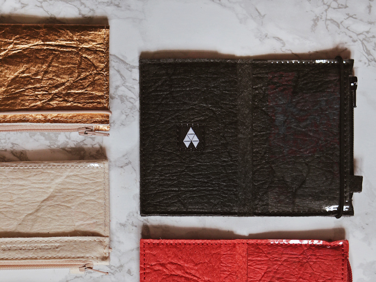 Wallet is made out of Piñatex - natural, innovative and patented new material, made from pineapple leaf fibres gathered by partner farming cooperatives in the Philippines. Piñatex fibres are the by-product of the pineapple harvest. No extra land, water, fertiliser or pesticides are required to produce the base material.
