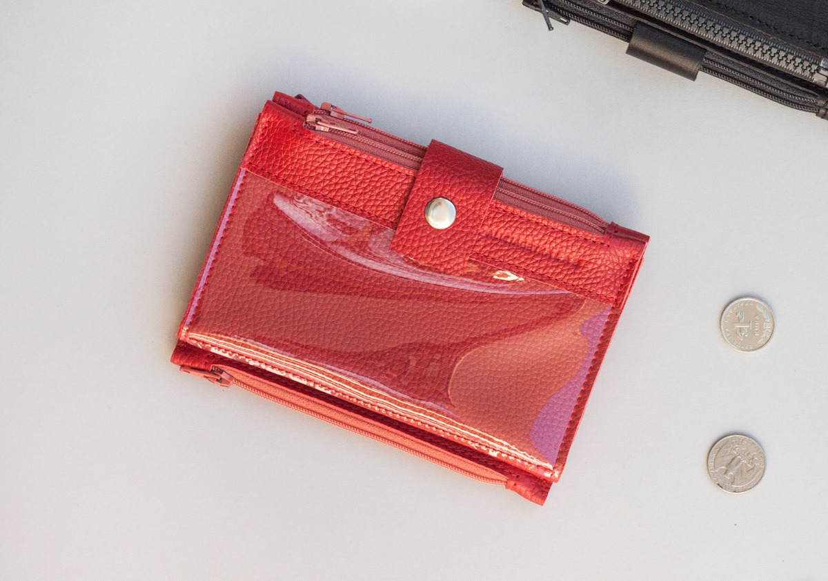 - 3 zipped pockets, including 2 transparent: 1 large external and 1 internal for coins.